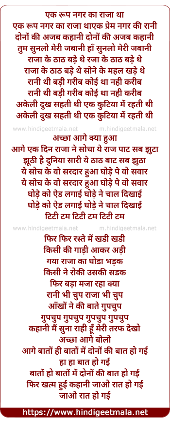 Lyrics of Ek Roop Nagar Ka Raja Tha - एक रूप नगर का राजा था