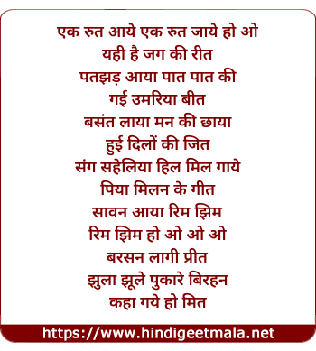 Lyrics of Ek Rut Aaye Ek Rut Jaye - एक रुत आये एक रुत जाये