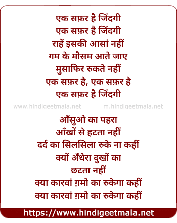 Lyrics of Ek Safar Hai Zindagi - एक सफ़र है जिंदगी