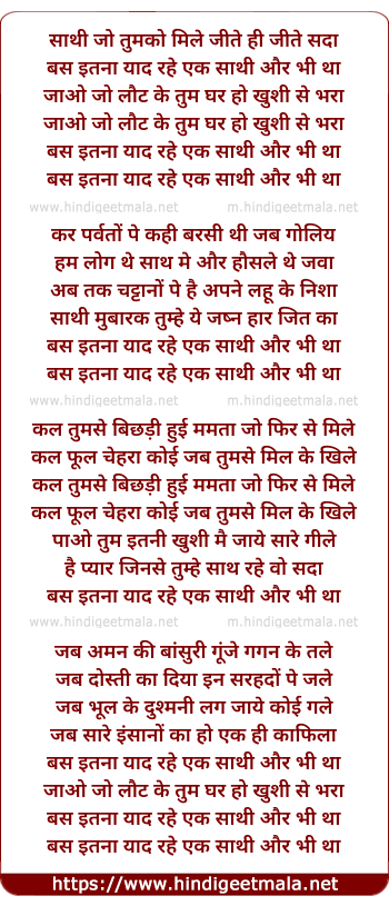 Lyrics of Ek Sathi Aur Bhi Tha - एक साथी और भी था