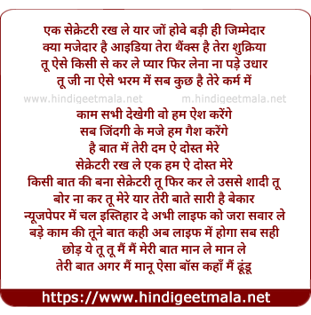 Lyrics of Ek Secretry - एक सेक्रेटरी