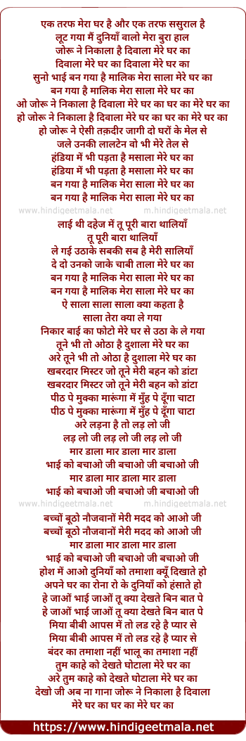 ho joru ne nikala hai diwala mere ghar ka ghar ka mere ghar ka