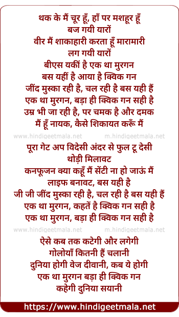 Lyrics of Ek Tha Murugun - एक था मुरगन