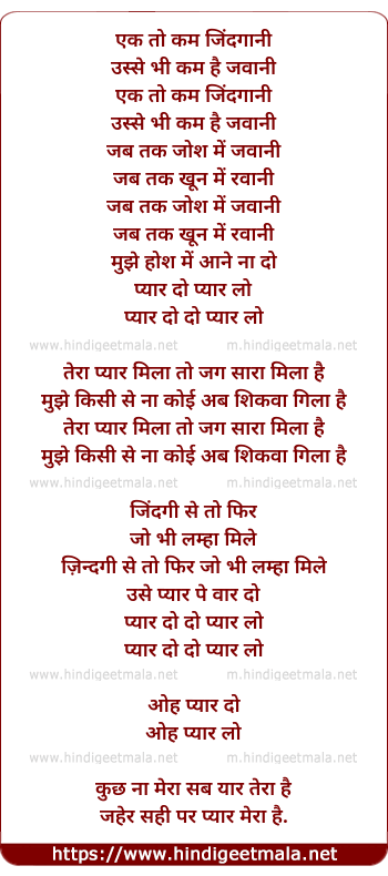 Lyrics of Ek To Kam Zindagaani - एक तो कम जिंदगानी