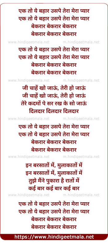 Lyrics of Ek To Ye Bahar Uspe Tera Mera Pyar - एक तो ये बहार उसपे तेरा मेरा प्यार
