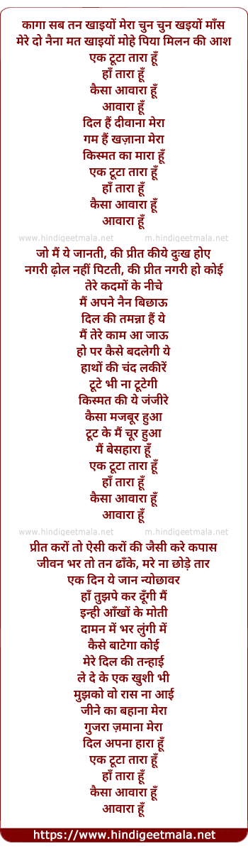 Lyrics of Ek Toota Tara Hu - एक टूटा तारा हूँ