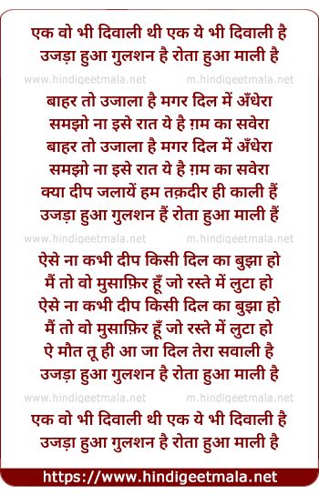 Lyrics of Ek Who Bhi Diwali Thi, Ek Ye Bhi Diwali Hai - एक वो भी दिवाली थी एक ये भी दिवाली है