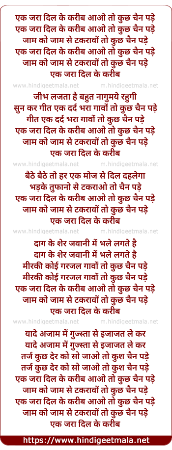 Lyrics of Ek Zara Dil Ke Kareeb - एक ज़रा दिल के करीब