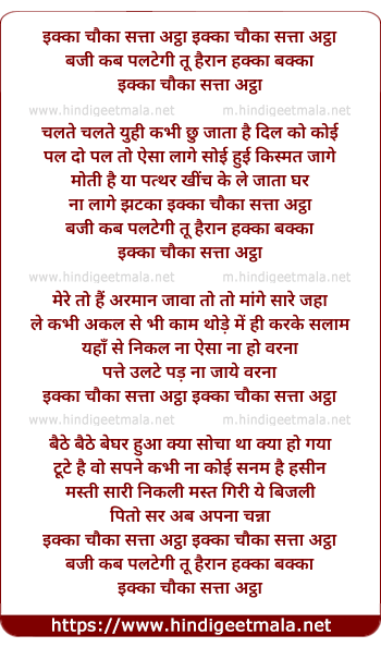 Lyrics of Ekka Chauka - इक्का चौका सत्ता अट्ठा इक्का चौका सत्ता अट्ठा
