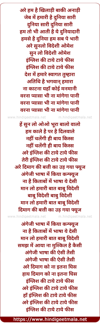 Lyrics of English Kee Taay Taay Fiss - इग्लिश की टाये टाये फीस