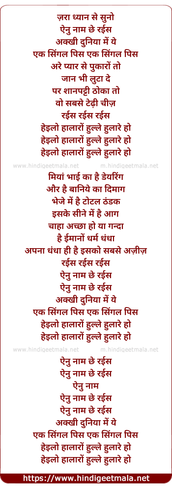 Lyrics of Enu Naam Chhe Raees - ज़रा ध्यान से सुनो
