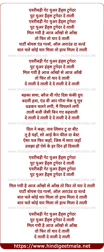 Lyrics of Everybody Get Your Hands Together - एवरीबड़ी गेट युअर हैंड्स टुगेदर
