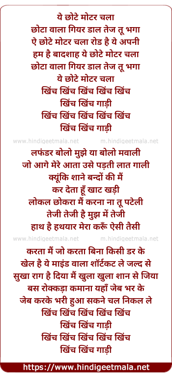 Lyrics of Ey Chhote Motor Chala - ए छोटे मोटर चला
