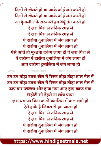 Lyrics of Ey Daroga Dunaliya Me Jung Laga Ho - एय दरोगा दुनालिया में जंग लागा हो