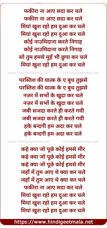 fakira na aye sada kar chale