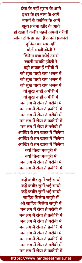 Lyrics of Fakiri - इंसा के नहीं मुराम के आगे