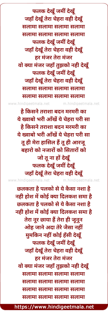 Lyrics of Falak Dekhu Jamin Dekhu Jaha Dekhu - फलक देखूँ जमीं देखूँ जहाँ देखूँ