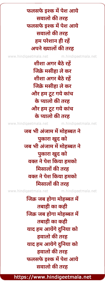 Lyrics of Falsafe Ishq Mein Pesh Aaye - फलसफे इश्क में पेश आये