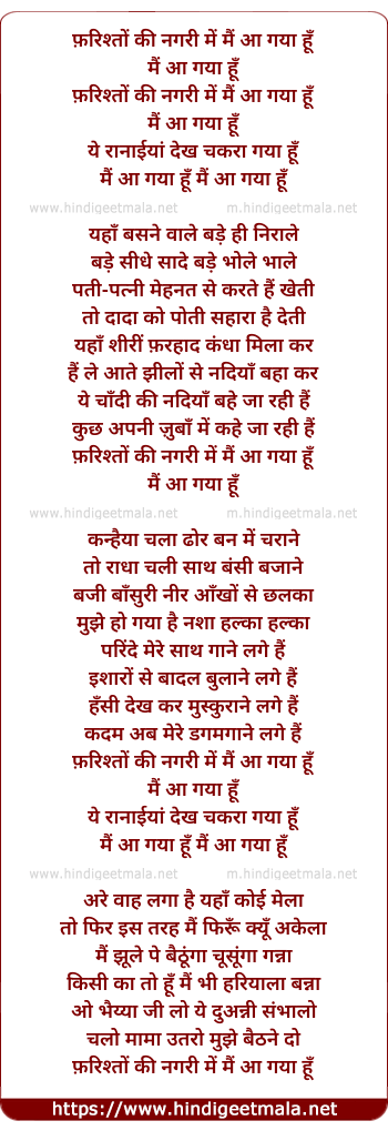 Lyrics of Farishton Ki Nagari Men Main Aa Gayaa Hun Main - फ़रिश्तों की नगरी में मैं आ गया हूँ