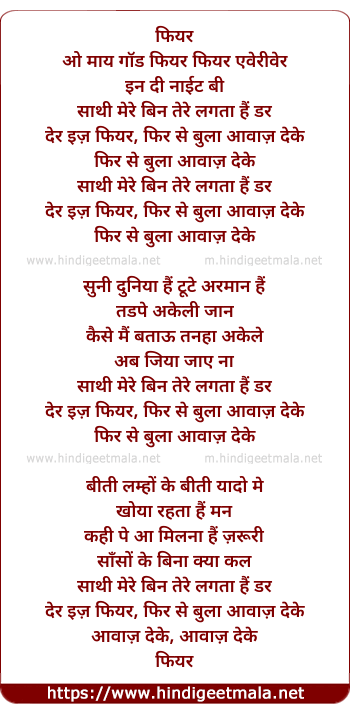 Lyrics of Fear Oh My God Fear, Sathi Mere Bin Tere Lagata Hai Dar - फियर ओ माय गॉड फियर, साथी मेरे बिन तेरे लगता हैं डर
