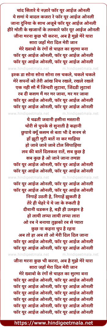 Comments on song "For Your Eyes Only, Chand Sitare Yeh Najare"