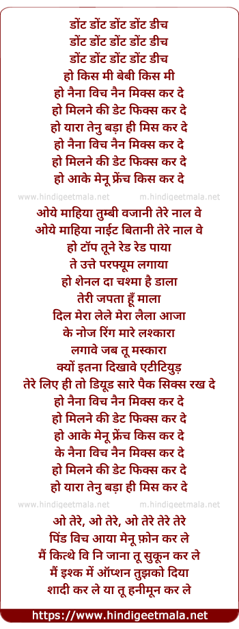 Lyrics of French Kiss Kar De - डोंट डोंट डोंट डोंट डीच