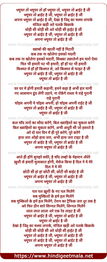 Lyrics of Future To Bright Hai Ji (Duet) - फ्यूचर तो फ्यूचर तो हाँ फ्यूचर तो, फ्यूचर तो ब्राईट है जी