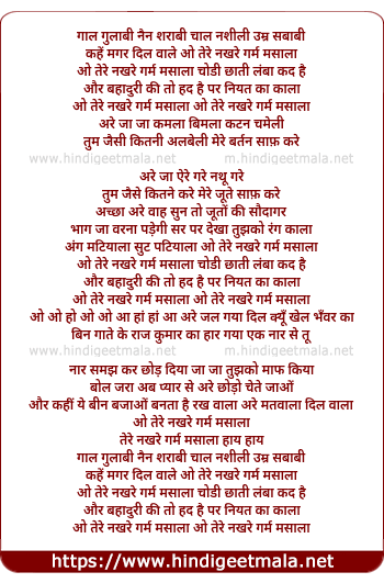 o tere nakhare gram masala chodi chhati lamba kad hai