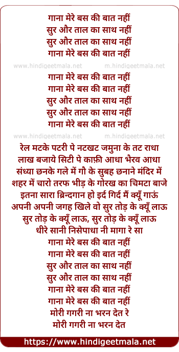 Lyrics of Gaana Mere Bas Ki Baat Nahi - गाना मेरे बस की बात नहीं