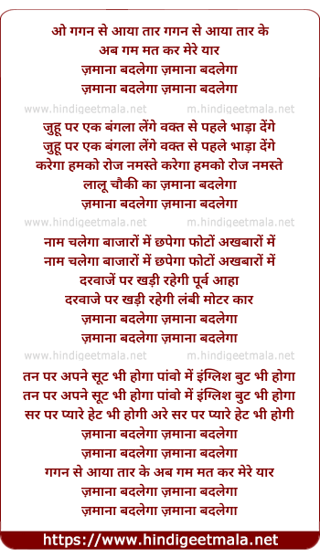 Lyrics of Gagan Se Aaya Tar - गगन से आया तार