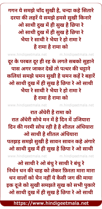 Lyrics of Gagan Ye Samajhe Dukh Me Hi Sukh Hai Chhipaa Re - गगन ये समझे दुख में ही सुख है छिपा रे