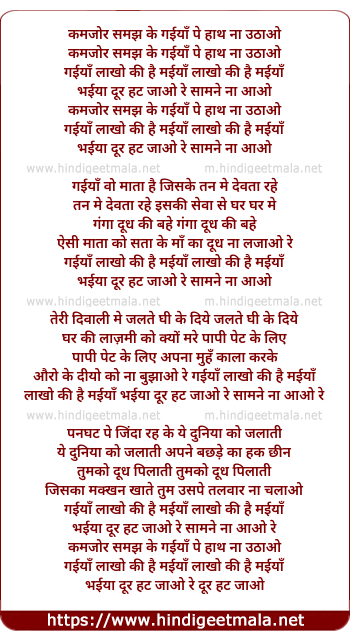 Lyrics of Gaiyya Lakho Ki Hai Maiyya - गईयाँ लाखो की है मईयाँ