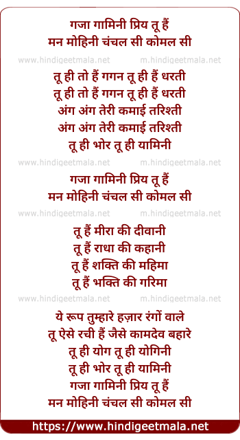 Lyrics of Gaja Gamini Tu Hai Man Mohini - गजा गामिनी तू है मोहिनी