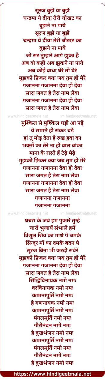 Lyrics of Gajanan - सूरज बुझे या बुझे