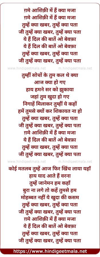 Lyrics of Gamme Aashiqi Me Hai Kya - ग़मे आशिक़ी में हैं क्या मजा