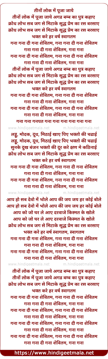 Lyrics of Ganaa Ganaa Di (2) - तीनों लोक में पूजा जाये