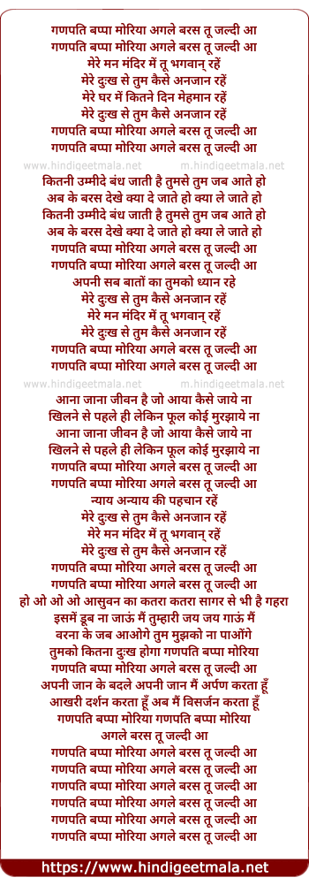 Lyrics of Ganapati Bappa Moraya - गणपति बप्पा मोरिया