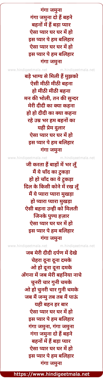 Lyrics of Ganga Jamuna Do Hai Bahane - गंगा जमुना दो है बहने