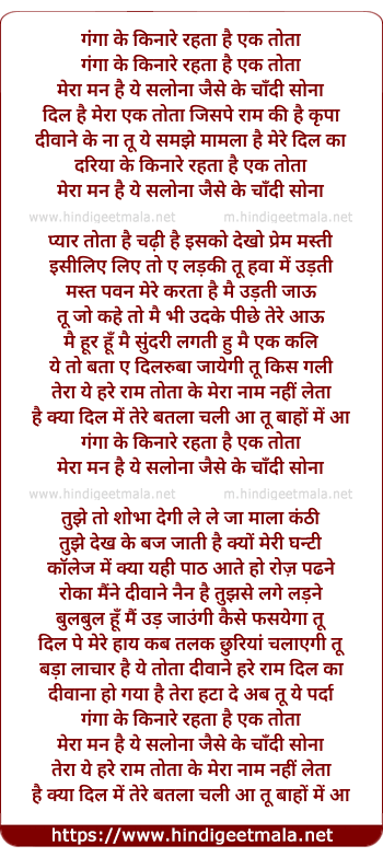 Lyrics of Ganga Ke Kinare Rehta Hai Ek Tota - गंगा के किनारे रहता है एक तोता