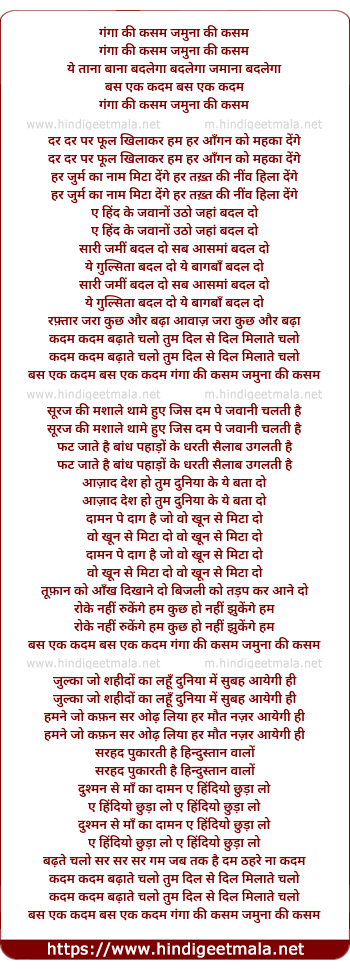 Lyrics of Ganga Ki Kasam Jamna Ki Kasam Ye Tana Bana Badlega - गंगा की कसम जमुना की कसम ये ताना बना बदलेगा