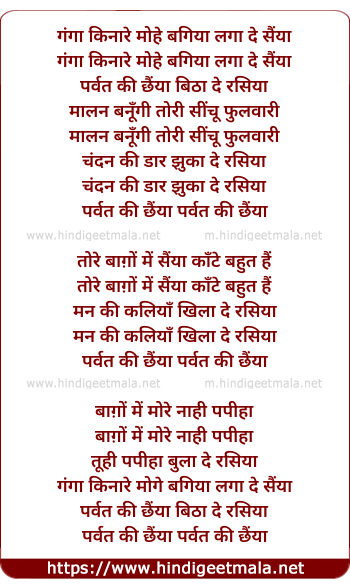Lyrics of Ganga Kinare Mohe Bagiya Laga De Saiyya - गंगा किनारे मोहे बगिया लगा दे सैंया