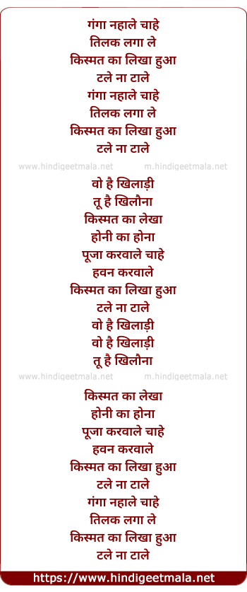 Lyrics of Ganga Nahaale - गंगा नहाले चाहे
