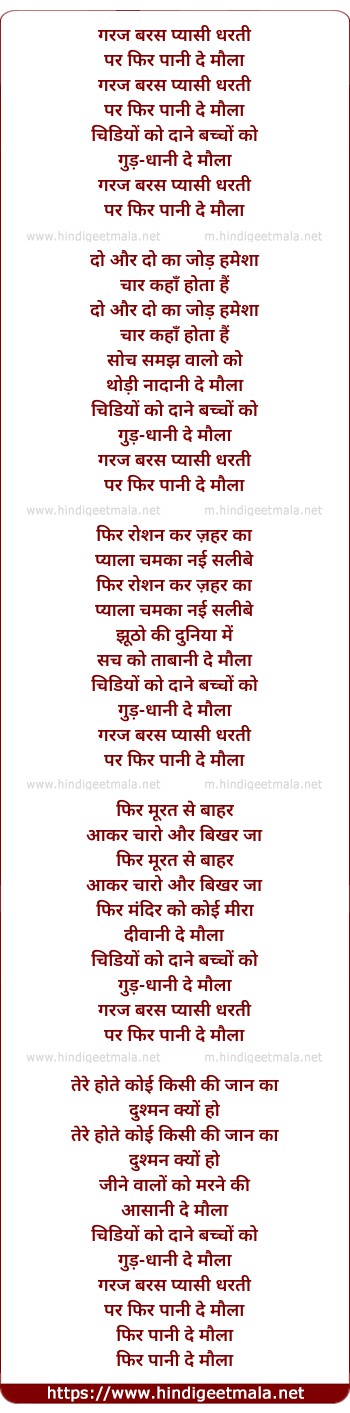 Lyrics of Garaj Baras Pyasi Dharti - गरज बरस प्यासी धरती
