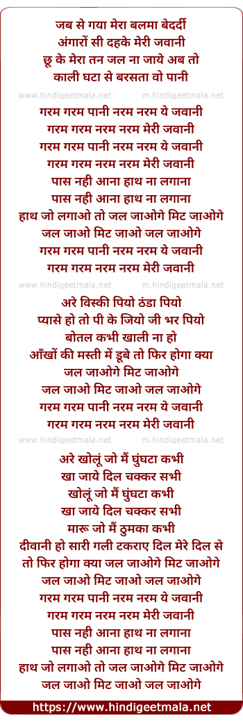 Lyrics of Garam Garam Pani Naram Naram Ye Jawani - गरम गरम पानी नरम नरम ये जवानी