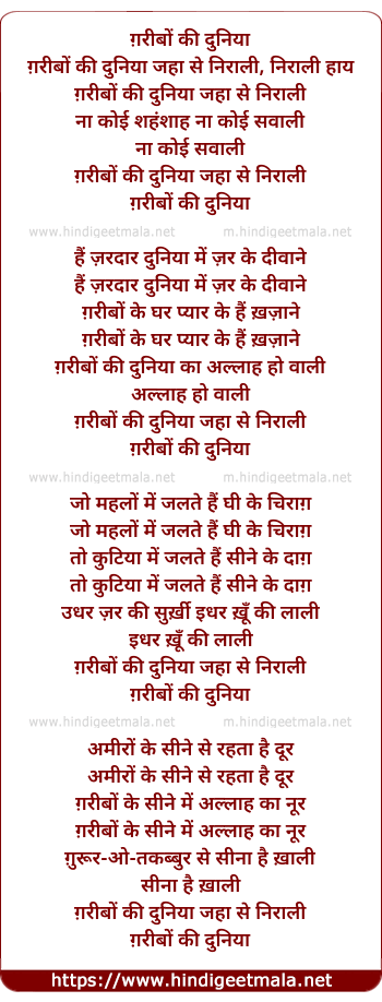 Lyrics of Garibo Kee Duniya Jahan Se Niralee - ग़रीबों की दुनिया