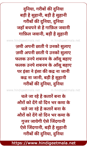 Lyrics of Garibo Ki Duniya - दुनिया, गरीबों की दुनिया
