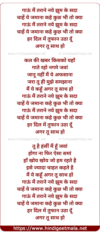 Lyrics of Gau Mai Tarane Jhoom Ke Sada - गाऊं मैं तराने झूम के सदा