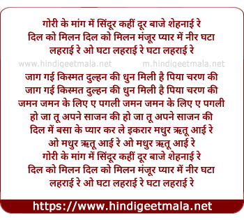 Lyrics of Gauri Ke Maang Me Sindoor, Kahi Dur Baaje Shanai Re - गोरी के मांग में सिंदूर, कहीं दूर बाजे शहनाई रे