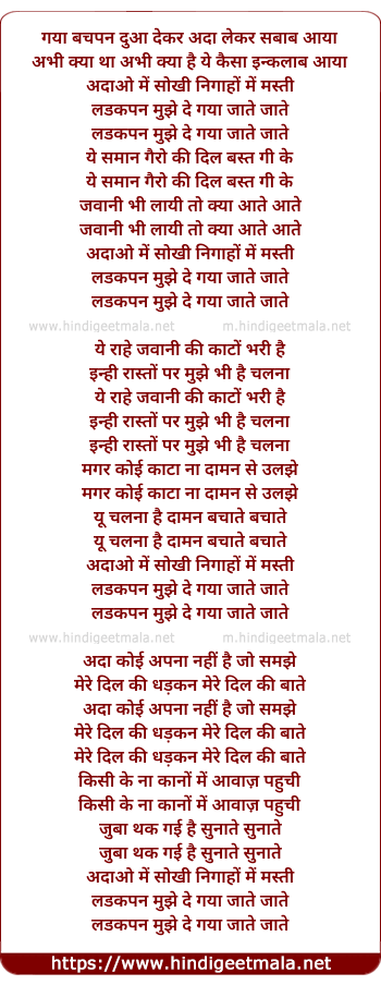 Lyrics of Gaya Bachpan Dua Dekar Adaa Lekar Sabaab Aaya - गया बचपन दुआ देकर अदा लेकर सबाब आया