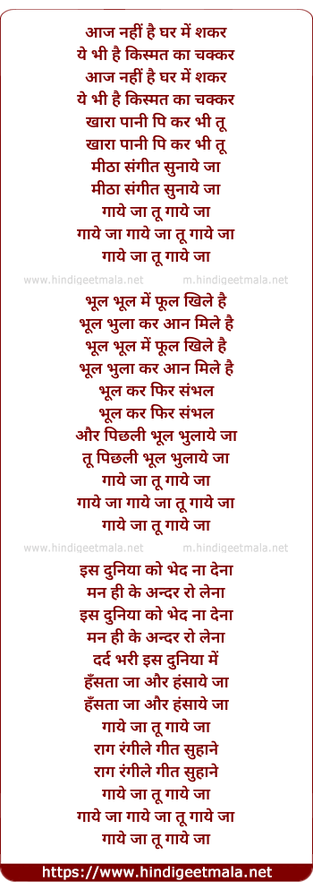 Lyrics of Gaye Jaa Tu Gaye Jaa - आज नहीं है घर में शकर